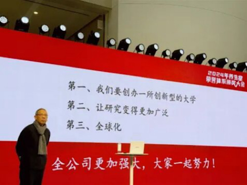 2025年1月22日,農(nóng)夫山泉母公司養(yǎng)生堂集團舉辦年會,農(nóng)夫山泉創(chuàng)始人鐘睒睒出席并發(fā)表演講。會上,鐘睒睒首次透露要創(chuàng)辦一所創(chuàng)新型的大學(xué),并計劃未來10年捐贈400億元。圖片來源:新華網(wǎng)