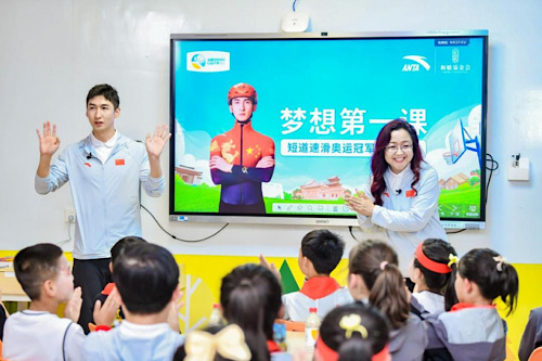 奧運(yùn)冠軍、安踏公益超A伙伴武大靖與同學(xué)們分享逐夢故事