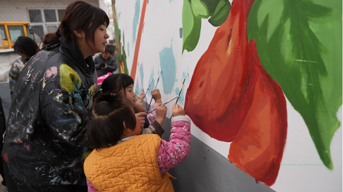 墻上的彩繪,悄悄重塑著村民對(duì)家鄉(xiāng)的認(rèn)同。參與墻繪的志愿者們沒(méi)有“單向輸出”審美,而是拉著村民一起動(dòng)筆:把港澳幫扶的情誼畫(huà)進(jìn)田野,把哪吒的童趣融進(jìn)巷陌,把村里的紅薯、粉條這些土寶貝變成畫(huà)里的主角。墻繪不再是外人眼中的網(wǎng)紅裝飾,而是村民能對(duì)號(hào)入座的記憶:描過(guò)色的孩子會(huì)驕傲地指著墻面喊“這是我畫(huà)的”。當(dāng)家鄉(xiāng)的風(fēng)景、自己的故事被“掛”在墻上,村民對(duì)這片土地的感情,也從生于斯長(zhǎng)于斯的習(xí)慣,變成了“我為它驕傲”的自豪。
