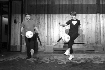 馬云與王霜一起顛球■ 本報記者 李慶