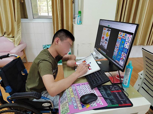 “長大后,我想成為一名畫家,把夢(mèng)里五彩斑斕的世界呈現(xiàn)在畫里。”廣西壯族自治區(qū)玉林市兒童福利院里,16 歲的小付坐在嶄新的課桌和電腦前,一筆一劃地勾勒著手中的畫作,臉上滿是認(rèn)真和專注,眼里盡是對(duì)未來的憧憬。小付是一名痙攣型腦癱兒童,對(duì)肌肉的控制較常人更為困難,他對(duì)畫畫充滿著熱情,他的畫里有著巧妙的構(gòu)思和獨(dú)到的色彩見解。
