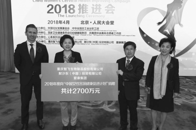中國婦女發(fā)展基金會(huì)理事長孟曉駟代表基金會(huì)接受了重慶智飛生物制品股份有限公司、默沙東(中國)投資有限公司和愛康集團(tuán)向“中國女性宮頸健康促進(jìn)計(jì)劃”項(xiàng)目的2018年度捐贈(zèng),并為上述企業(yè)頒發(fā)了捐贈(zèng)證書。