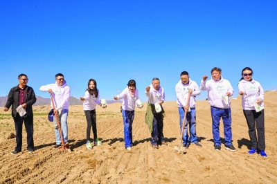 2019年7月18日當(dāng)天,來自聯(lián)合國環(huán)境規(guī)劃署、環(huán)基會、中國國際公共關(guān)系協(xié)會、南木林縣政府、醫(yī)學(xué)專家、媒體和意見領(lǐng)袖,以及天貓和大學(xué)生藝術(shù)博覽會的青年藝術(shù)家等代表,見證了自然堂和環(huán)基會在日喀則市南木林縣艾瑪鄉(xiāng)種下100萬平方米的綠麥草。