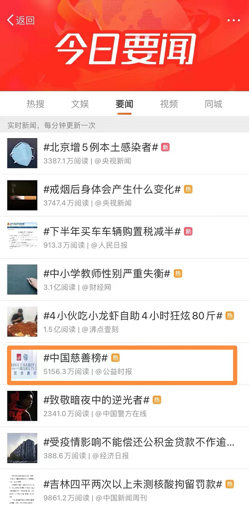 無論是中央廣播電視總臺、人民日報、人民政協(xié)報、中國日報、人民網(wǎng)、新華網(wǎng)、中國網(wǎng)、光明網(wǎng)、環(huán)球網(wǎng)等主流媒體,還是騰訊、新浪、搜狐、鳳凰等門戶網(wǎng)站和新媒體平臺,都分別以短視頻、消息、專題以及深度稿件等不同形式,報道了中國慈善榜發(fā)布盛況。新華網(wǎng)、中國網(wǎng)、鳳凰網(wǎng)、新浪公益、華數(shù)TV、愛奇藝、一直播、bilibili、虎牙直播、優(yōu)酷、微贊以及《公益時報》微信視頻號、官方微博等平臺以云端的方式進行了線上直播。