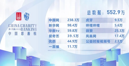 傳播數(shù)據(jù)是最為直觀的體現(xiàn)。5月30日第十九屆(2022)中國慈善榜發(fā)布活動開播后,短時間內(nèi),幾大直播平臺就有總計超過552.9萬人次同時在線觀看,引發(fā)了極大的社會關注。
