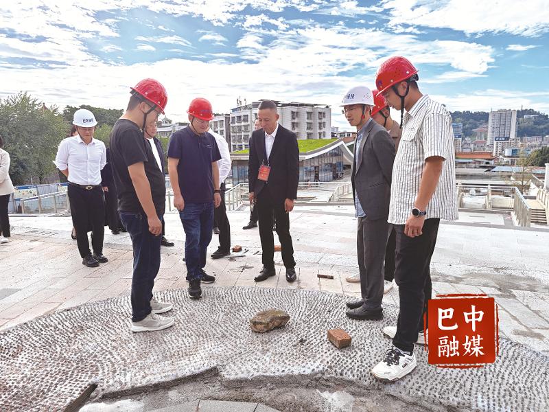 人大代表在巴城狀元橋片區(qū)綜合停車場(chǎng)施工現(xiàn)場(chǎng)察看地面裝飾情況
