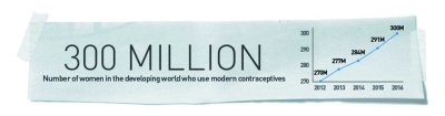3億:發(fā)展中國(guó)家使用現(xiàn)代避孕藥具的女性人數(shù)