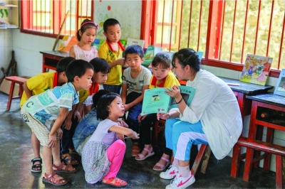 益微青年鄉(xiāng)村夏令營:大學生志愿者講繪本