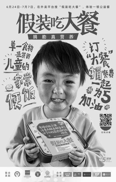 6月24日至7月7日期間,中國(guó)兒童少年基金會(huì)和安利公益基金會(huì)共同開(kāi)啟#假裝吃大餐#公益活動(dòng)。活動(dòng)通過(guò)售賣(mài)以貧困兒童日常餐食為參照制作的公益體驗(yàn)餐,助力中國(guó)貧困地區(qū)3-5歲兒童改善營(yíng)養(yǎng)不良的狀況。