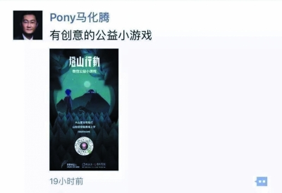 2018年11月17日,命名為《燈山行動》的游戲一經(jīng)投放便得到大量關(guān)注,這是首款公益主題的微信小游戲,馬化騰也發(fā)了一條朋友圈表示支持。