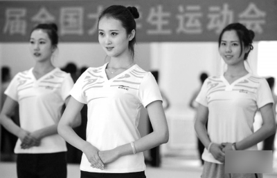 日前,第九屆全國(guó)大學(xué)生運(yùn)動(dòng)會(huì)禮儀志愿者培訓(xùn)在天津航空培訓(xùn)基地舉行。參照航空乘務(wù)員培訓(xùn)標(biāo)準(zhǔn),首批50名大學(xué)生禮儀志愿者在專業(yè)禮儀培訓(xùn)師指導(dǎo)下進(jìn)行社交禮儀、禮儀儀態(tài)和芭蕾舞基礎(chǔ)等項(xiàng)目的訓(xùn)練。