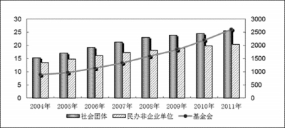 近年我國社會組織發(fā)展數(shù)量 民政部門接收的社會捐贈 注:圖中柱狀對應左側數(shù)據(jù)軸,點線對應右側數(shù)據(jù)軸 ■ 本報記者 張雪弢 日前,民政部發(fā)布《2011年社會服務發(fā)展統(tǒng)計公報》。公報顯示,2011年,全國社會服務事業(yè)費支出3229.1億元,全年各地直接接收社會捐贈款物495.0億元,救助生活無著流浪乞討未成年人17.9萬人次。 全國共有社會服務業(yè)機構129.8萬個 截至2011年底,全國共有社會服務業(yè)機構129.8萬個,比上年增長2.3%,職工總數(shù)1129.8萬人,固定資產總值為6989.8億元,比上年增加6.1%。社會服務業(yè)增加值2459.8億元,比上年增長22.1%,占第三產業(yè)的比重1.2%。截至2011年底,全國通過社會工作師考試的13421人,通過助理社會工作師考試的40755人。 全國社會服務事業(yè)費支出3229.1億元,比上年增長19.7%,占國家財政支出比重為3%,與上年持平。中央財政共向各地轉移支付社會服務事業(yè)費1808億元,比上年增長34.7%,占社會服務事業(yè)費比重56%,比上年增加了6.2個百分點。社會服務事業(yè)基本建設施工項目4533個,全年完成投資總額218.5億元,比上年增長19.4%。 全國共建立 慈善超市8802個 截至2011年底,全國共建立經常性社會捐助工作站、點和慈善超市3.4萬個(其中:慈善超市8802個)。全年各地直接接收社會捐贈款物495.0億元,其中:民政部門直接接收社會各界捐款96.6億元,捐贈物資折款4.8億元,各類社會組織接收捐款393.6億元。 全年各地接收捐贈衣被2918.5萬件,其中:棉衣被1647.1萬件。間接接收其他部門轉入的社會捐款3.8億元,衣被588.4萬件,其中:棉衣被410.2萬件,捐贈物資折款2714.3萬元。全年有1459.7萬人次困難群眾受益。全年有950.2萬人次在社會服務領域提供了9272.6萬小時的志愿服務。 全國共有基金會 2614個 截至2011年底,全國共有社會組織46.2萬個,比上年增長3.7%。其中,全國共有社會團體25.5萬個,比上年增長4.0%。全年共執(zhí)法檢查社會團體890起,其中取締非法社會團體12起,行政處罰878起。全國共有民辦非企業(yè)單位20.4萬個,比上年增長3.1%。全年共執(zhí)法檢查民辦非企業(yè)1016起,其中取締非法民辦非企業(yè)9起,行政處罰1007起。 同時,我國共有基金會2614個,比上年增加414個,增長18.8%,其中:公募基金會1218個,非公募基金會1370個,境外基金代表機構26個。民政部登記的基金會183個。公募基金會和非公募基金會共接收社會各界捐贈219.7億元。全年共行政處罰基金會11起。 另據(jù)統(tǒng)計,截至2011年底,基層群眾自治組織共計67.9萬個,全年共有35.8萬個村(居)委會完成選舉,參與選舉的村(居)民登記數(shù)為4.5億人,參與投票人數(shù)為3.6億人。 全國有流浪兒童 救助保護中心241個 截至2011年底,全國共有兒童福利機構397個,比上年增加62個,床位6.0萬張,比上年增長20.0%。全國有流浪兒童救助保護中心241個,床位0.8萬張。全年救助生活無著流浪乞討未成年人17.9萬人次。 民政部會同財政部下達25.2億元中央財政專項資金補助各地發(fā)放孤兒基本生活費。截至2011年底,全國共有孤兒50.9萬人,其中各類社會福利機構收養(yǎng)兒童10.8萬人,社會散居孤兒40.1萬人。2011年全國辦理家庭收養(yǎng)登記31424件,其中:中國公民收養(yǎng)登記27579件,外國人收養(yǎng)登記3845件。 全國共有生活無著人員救助管理單位1788個,床位7.9萬張,其中救助管理站1547個,床位7.1萬張。全年救助城市生活無著的流浪乞討人員241.0萬人次,其中在站救助220.5萬人次,不在站救助20.5萬人次。全國共有軍休軍供機構2287個。其中軍休管理單位1960個,可提供休養(yǎng)戶數(shù)16.0萬戶;軍供站327個,床位3.8萬張。 |
