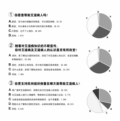 ■ 本報(bào)記者 張雪弢 據(jù)媒體報(bào)道,因術(shù)前被查出攜帶艾滋病病毒,天津25歲的肺癌患者小峰(化名)在求醫(yī)時(shí)屢次遭拒。在轉(zhuǎn)入第三所醫(yī)院時(shí),小峰私改病歷隱瞞病情,手術(shù)得以順利進(jìn)行。近日,此事引起廣泛討論,在同情艾滋病人就醫(yī)難的同時(shí),網(wǎng)友們非常關(guān)注艾滋病人的權(quán)益保障以及對(duì)艾滋病人的社會(huì)關(guān)愛等問題。 事實(shí)上,為提高人們對(duì)艾滋病的認(rèn)識(shí),世界衛(wèi)生組織于1988年1月就將每年的12月1日定為“世界艾滋病日”。2012年12月1日是第25個(gè)“世界艾滋病日”,活動(dòng)主題仍為“行動(dòng)起來,向‘零’艾滋邁進(jìn)”,副標(biāo)題是“全民參與,全力投入,全面預(yù)防”。 那么,隨著對(duì)艾滋病知識(shí)的不斷宣傳,大家對(duì)艾滋病及艾滋病人的認(rèn)識(shí)是否有所改變?關(guān)愛艾滋病人,你是否愿貢獻(xiàn)一份力量呢?《公益時(shí)報(bào)》與搜狐公益聯(lián)手推出的“益調(diào)查”結(jié)果顯示,超六成網(wǎng)友表示愿意幫助艾滋病人。 調(diào)查結(jié)果 本次調(diào)查從11月23日10時(shí)至11月26日10時(shí),共有2373位網(wǎng)友參與調(diào)查。 “益調(diào)查”結(jié)果顯示,超六成網(wǎng)友愿意幫助艾滋病人,其中28.2%的網(wǎng)友表示可以身體力行地參與到對(duì)艾滋病人的幫助。還有32.2%的網(wǎng)友表示雖然愿意幫助艾滋病人,但與他們接觸還是有顧慮,可以選擇捐款捐物等方式來幫助他們。有38.02%的網(wǎng)友表示不愿意幫助艾滋病人,因?yàn)檫^不了心理關(guān)。 隨著對(duì)艾滋病知識(shí)的不斷宣傳,大家對(duì)艾滋病及艾滋病人的認(rèn)識(shí)是否有所改變呢?參與調(diào)查的網(wǎng)友中,32.92%表示會(huì)有改變,當(dāng)更了解這方面的知識(shí)后,改觀了對(duì)艾滋病人的認(rèn)識(shí),會(huì)嘗試接觸和幫助他們。32.28%的網(wǎng)友則表示,在意識(shí)上有改觀,但與他們接觸還是有顧慮。而33.25%的網(wǎng)友則表示“沒什么改變,即使了解相關(guān)知識(shí),接受起來也很困難”。 目前,越來越多的民間組織參與到艾滋病救助的領(lǐng)域中來。那么,大家更支持民間組織側(cè)重在哪方面幫助艾滋病人呢?45.81%的網(wǎng)友認(rèn)為,民間組織應(yīng)該側(cè)重于幫助大眾了解各方面防艾知識(shí),從根本上消除艾滋病的感染。而28.32%的網(wǎng)友則認(rèn)為更應(yīng)該側(cè)重于推廣宣傳艾滋病知識(shí),消除社會(huì)對(duì)艾滋病人的歧視。同時(shí),也有部分網(wǎng)友認(rèn)為民間組織應(yīng)該側(cè)重于為新發(fā)現(xiàn)感染者提供咨詢和情感維系,這個(gè)很重要。 |