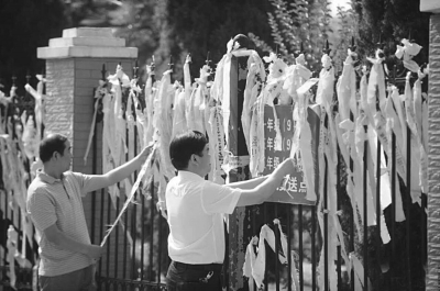 6月6日,監(jiān)利縣玉沙小學(xué),大門兩側(cè)長(zhǎng)長(zhǎng)的欄桿上掛滿了黃絲帶,上面寫滿了孩子們的祈愿?!皷|方之星”客輪翻沉事件發(fā)生后,監(jiān)利這個(gè)港口小城民間蘊(yùn)藏的力量瞬時(shí)爆發(fā)。來(lái)自社會(huì)各界的志愿者給參加救援的官兵們送飯,為遇難者家屬提供免費(fèi)住宿餐飲,調(diào)度礦泉水、雨傘等物資,綁上黃絲帶提供免費(fèi)車輛服務(wù)。