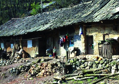 泥樹小學(xué)是一所民辦小學(xué),也是村里唯一的學(xué)校。由于條件惡劣,沒有人愿意來此工作,高中畢業(yè)的陶進(jìn)軍是村里唯一的老師。教育資源嚴(yán)重短缺的泥樹小學(xué)只有一個六年級和三年級。圖中是課余時孩子站在教室外。 |