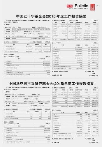 中國紅十字基金會(2015)年度工作報告摘要