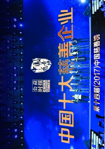 中國僑聯(lián)副主席喬衛(wèi)(左五)、中國社會(huì)工作聯(lián)合會(huì)副會(huì)長何建民(右五)為年度頒獎(jiǎng)。第十四屆(2017)中國慈善榜年度十大慈善企業(yè)的獲得者分別是:江蘇中南建設(shè)集團(tuán)股份有限公司、日照鋼鐵控股集團(tuán)有限公司、新奧集團(tuán)股份有限公司、NU SKIN 如新、海航集團(tuán)、中國華信能源有限公司、上海荷??毓桑瘓F(tuán))有限公司、中國民生銀行股份有限公司、真維斯國際(香港)有限公司、騰訊公司。 |