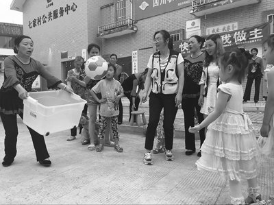 5月29日當天,雅安市雨城區(qū)上里鎮(zhèn)七家村的壹基金-兒童服務(wù)站舉行了慶“六一”活動,在親子游戲“你投我接”游戲中,一位奶奶正在努力接孫女投來的球。5月31日,壹基金支持雅安本地6家社會組織開設(shè)的20個壹樂園兒童服務(wù)站全部建成開放。20家社區(qū)兒童服務(wù)站將輻射雅安市天全縣、寶興縣、蘆山縣和雨城區(qū)共4個區(qū)縣20個農(nóng)村社區(qū),讓2000余名農(nóng)村兒童直接受益。