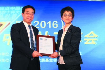 在第七屆(2016)中國社會工作年會上,中國社會工作聯(lián)合會會長宮蒲光(左)從國際社會工作者聯(lián)合會副主席兼亞太區(qū)主席木村真理子手中接過中國承辦第24屆(2017)亞太地區(qū)社會工作區(qū)域聯(lián)合會議確認函。