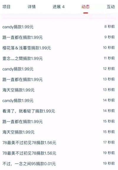 ■ 本報(bào)記者 菅宇正 首日觀察: 有基金會(huì)自行配捐, 騰訊配捐比例走低 99公益日第一天,騰訊總計(jì)9999萬(wàn)元的配捐資金在臨近中午時(shí)全部用完,累積幫助項(xiàng)目6000個(gè),而晚間9:09分驚喜時(shí)刻中的666.66萬(wàn)元也在數(shù)分鐘之內(nèi)被87個(gè)項(xiàng)目瓜分。截至9月7日晚間10:38分,騰訊公益平臺(tái)顯示,首日捐贈(zèng)人次超過(guò)538萬(wàn),捐贈(zèng)金額超過(guò)3.15億元。 首日,中華少年兒童慈善救助基金會(huì)累計(jì)籌款金額超5692萬(wàn)元,捐贈(zèng)人次達(dá)到75萬(wàn),其中“9958愛(ài)心病房”項(xiàng)目籌款總額超812萬(wàn)元(包含驚喜時(shí)刻配捐金額),獲得騰訊配捐123萬(wàn)元,企業(yè)配捐資金16.9萬(wàn)元,成為首日基金會(huì)籌款和單項(xiàng)籌款的雙料“冠軍”;阿拉善SEE基金會(huì)共有6個(gè)項(xiàng)目入圍籌款前99名,其中“留住長(zhǎng)江的微笑”項(xiàng)目共籌集資金超過(guò)204萬(wàn)元(包含驚喜時(shí)刻配捐金額),騰訊配捐超15.8萬(wàn)元,而6個(gè)入圍項(xiàng)目累計(jì)獲得企業(yè)配捐超過(guò)375萬(wàn)元,為首日攬獲企業(yè)配捐資金最高的基金會(huì)。 本報(bào)記者發(fā)現(xiàn),上海真愛(ài)夢(mèng)想公益基金會(huì)的“兒童素養(yǎng)教育計(jì)劃”項(xiàng)目首日獲得企業(yè)配捐超113萬(wàn)元,而該“企業(yè)”方即為上海真愛(ài)夢(mèng)想公益基金會(huì)本身,此外,還有包括中國(guó)扶貧基金會(huì)、中國(guó)兒童少年基金會(huì)、深圳慈善會(huì)、陜西省慈善協(xié)會(huì)等為機(jī)構(gòu)自有項(xiàng)目進(jìn)行配捐。 《公益時(shí)報(bào)》對(duì)首日籌款前99名的項(xiàng)目籌款金額進(jìn)行計(jì)算,以期得到每個(gè)項(xiàng)目公眾籌款與騰訊配捐的比例關(guān)系,即各項(xiàng)目需要多少元的公眾捐贈(zèng),才能獲得1元騰訊配捐。通過(guò)比對(duì)發(fā)現(xiàn),中國(guó)兒童少年基金會(huì)下設(shè)的“送春蕾女生成長(zhǎng)禮”項(xiàng)目是首日最難獲騰訊配捐的“苦主”,該項(xiàng)目共籌集資金64.79萬(wàn)元,騰訊配捐資金為1.1萬(wàn)元,意味著該項(xiàng)目每接收62.65元公眾善款,才能獲得騰訊公益慈善基金會(huì)1元的配比資金。 此外,記者發(fā)現(xiàn)個(gè)別項(xiàng)目存在配捐總額與籌款總額不符的現(xiàn)象。 中國(guó)兒童少年基金會(huì)“鋼絲善行愛(ài)心大粵行”項(xiàng)目首日累計(jì)籌集資金120.8萬(wàn)元,但據(jù)騰訊公益平臺(tái)項(xiàng)目頁(yè)面顯示,該項(xiàng)目獲得中國(guó)兒童少年基金會(huì)配捐資金113.3萬(wàn)元,獲得騰訊基金會(huì)配捐資金超11.8萬(wàn),兩者相加已超過(guò)該項(xiàng)目顯示的首日籌款總額。而阿拉善SEE基金會(huì)下設(shè)的項(xiàng)目也存在類(lèi)似情況。 次、末日觀察: “詭異”的捐贈(zèng)記錄 99公益日第二天臨近尾聲時(shí),據(jù)《公益時(shí)報(bào)》記者統(tǒng)計(jì),前兩日共有942萬(wàn)人次捐贈(zèng)5.59億元善款,而第二日1億元的騰訊配捐資金也在半小時(shí)內(nèi)即宣告“清空”,共幫助6207個(gè)項(xiàng)目。與首日538萬(wàn)捐贈(zèng)人次、3.15億元捐贈(zèng)資金的數(shù)據(jù)相比,第二日增速有所放緩。 值得關(guān)注的是,在許多項(xiàng)目的捐贈(zèng)明細(xì)中,出現(xiàn)了令記者感到費(fèi)解的捐贈(zèng)行為。 上海真愛(ài)夢(mèng)想公益基金會(huì)“兒童素養(yǎng)教育計(jì)劃”在第二日共有50727人次參與捐贈(zèng),項(xiàng)目累計(jì)籌集資金超441萬(wàn)元,獲騰訊公益慈善基金會(huì)配捐220.4萬(wàn)元,獲上海真愛(ài)夢(mèng)想公益基金會(huì)自行配捐116.3萬(wàn)元。但在該項(xiàng)目的捐贈(zèng)流水中,出現(xiàn)了相同ID間隔僅有1至2秒的重復(fù)捐贈(zèng)。 而中華兒慈會(huì)“為那一抹難忘的純凈”項(xiàng)目第二日共籌款267.9萬(wàn)元(包含驚喜時(shí)刻配捐資金),獲得騰訊配捐資金76.2萬(wàn)元,第二日籌款排名第9。記者截取該項(xiàng)目最新捐贈(zèng)明細(xì),也發(fā)現(xiàn)一個(gè)有相同名稱(chēng)的ID在同一時(shí)間段內(nèi)反復(fù)進(jìn)行捐贈(zèng),且絕大多數(shù)捐贈(zèng)金額只有幾分錢(qián)。 同樣的情況還出現(xiàn)在中國(guó)社會(huì)福利基金會(huì)“授漁計(jì)劃一幫一助學(xué)”項(xiàng)目等眾多第二日籌款額排名靠前的項(xiàng)目中。 而另有很多項(xiàng)目并未顯示其捐贈(zèng)明細(xì),在有顯示的項(xiàng)目中,許多項(xiàng)目的捐贈(zèng)明細(xì)中并未發(fā)現(xiàn)此類(lèi)問(wèn)題。 鑒于有不少人懷疑此現(xiàn)象是盡可能多地獲取配捐的“刷單”行為,記者在9月9日凌晨3點(diǎn),即第三日配捐尚未開(kāi)始時(shí)再次進(jìn)行觀察,發(fā)現(xiàn)深圳市愛(ài)佑未來(lái)慈善基金會(huì)“白血病我不怕你”項(xiàng)目在此時(shí)仍舊保持著非常高的捐贈(zèng)人氣,其捐贈(zèng)流水中仍舊不間斷出現(xiàn)眾多ID相同的捐贈(zèng),金額大多以1.99元、0.01元、0.49元的低額度為主。而記者在該項(xiàng)目的捐贈(zèng)欄中,并未發(fā)現(xiàn)符合這些低額金額的默認(rèn)捐贈(zèng)選項(xiàng),更無(wú)法在捐贈(zèng)頁(yè)面直接輸入小數(shù)點(diǎn)。 而在記者觀察的短短8分鐘內(nèi),該項(xiàng)目的捐贈(zèng)數(shù)據(jù)就從41297人次、6