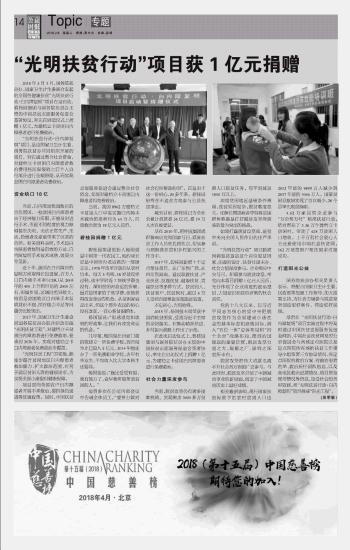 “光明扶貧行動(dòng)”項(xiàng)目獲1億元捐贈(zèng)