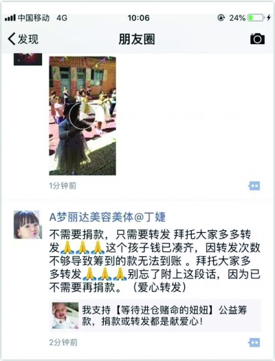 6月21日,微信公眾號“微言薄語”發(fā)布了一篇名為《不辭而別?聽說女兒重病女子轉(zhuǎn)身離開,找到后只說一句話,丈夫決定賣房子》的文章,并在文中為騰訊公益平臺“等待進(jìn)倉賭命的妞妞”項目籌款。25日,該文以一種特殊的方式在微信朋友圈成為熱點,許多人轉(zhuǎn)發(fā)該文,并附言“不需要捐款,只需要轉(zhuǎn)發(fā),錢已籌齊,因轉(zhuǎn)發(fā)次數(shù)不夠?qū)е禄I款無法到賬。拜托大家多多轉(zhuǎn)發(fā),別忘了附上這段話,因為已不需要再捐款。” 經(jīng)《公益時報》記者向籌款家屬、志愿者、騰訊公益、基金會等多方求證,“因轉(zhuǎn)發(fā)次數(shù)不夠?qū)е禄I款無法到賬”的言論純屬謠言。 在互聯(lián)網(wǎng)公益平臺、網(wǎng)絡(luò)個人求助成為籌款主流方式的今天,微信朋友圈因其“熟人社交”的特性,也成為了承載此類籌款項目傳播重任的最佳“利器”。微信朋友圈在幫助傳播這些籌款項目的同時,也無形中為籌款平臺、籌款文案發(fā)布方進(jìn)行了傳播。 是否籌款平臺為了增加自身的傳播量而對提現(xiàn)條件進(jìn)行了相關(guān)設(shè)定呢?為此,騰訊公益運營團(tuán)隊第一時間做出回應(yīng),其運營團(tuán)隊借助《公益時報》向公眾發(fā)出聲明: 近日,自媒體人“微言薄語”于6月21日發(fā)布了一篇文章——《不辭而別?聽說女兒重病女子轉(zhuǎn)身離開,找到后只說一句話,丈夫決定賣房子》,并為公益項目【等待進(jìn)倉賭命的妞妞】籌款。 但朋友圈突然出現(xiàn)“不需要捐款,只需要轉(zhuǎn)發(fā),錢已湊齊,因轉(zhuǎn)發(fā)次數(shù)不夠?qū)е禄I款無法到賬”的言論被轉(zhuǎn)發(fā),純屬謠言。在此聲明:騰訊公益絕對不存在轉(zhuǎn)發(fā)次數(shù)不夠不能提現(xiàn)的規(guī)定! 據(jù)騰訊公益運營團(tuán)隊透露,騰訊公益將追究其法律責(zé)任。同時,請公眾切勿輕信,并請相關(guān)個人立即停止散播此虛假不實信息。 談及事件發(fā)生后,如何避免同類事件的再發(fā)生,騰訊公益運營團(tuán)隊告訴《公益時報》記者,主要通過兩方面:第一,呼吁網(wǎng)友不要被一些網(wǎng)絡(luò)信息迷惑,所有相關(guān)條款都可以在騰訊公益平臺查到,并以此為準(zhǔn);第二,希望媒體和騰訊公益一起,廣泛傳播,讓平臺的各項政策和規(guī)則被更多人所熟悉。 自媒體作者 刷取流量而為之? “21日發(fā)文,22日中午籌款達(dá)18萬余元。25日中午前,善款還未籌滿,隨后騰訊公益平臺將其放置籌款首頁后,晚上八九點善款便已籌齊。”微言薄語公眾號作者薄高鵬告訴《公益時報》記者。 截至目前,騰訊公益平臺上為公益項目【等待進(jìn)倉賭命的妞妞】的籌款已全部籌滿,計劃籌款40萬元,實際籌得40.09萬元,捐贈人次達(dá)14547次。 “昨晚(25日)在微信公眾號的后臺有網(wǎng)友給我留言,我才知道這個事情,26日早上騰訊公益的相關(guān)負(fù)責(zé)人也過來問我。說實話我想不通為何有人要制造這個謠言,動機(jī)是什么呢?希望趕緊找出第一個發(fā)布謠言的人?!闭劶笆录l(fā)生的緣由,薄高鵬向《公益時報》社記者坦言道。 事件一出,薄高鵬第一時間在微信公眾號上刊發(fā)了相關(guān)聲明,進(jìn)行事實澄清。 據(jù)薄高鵬透露,截至記者發(fā)稿時間,公眾號的留言持續(xù)不斷,但對于謠言的反饋很少,大多都是關(guān)懷孩子治療的情況和祝福,后臺所顯示的閱讀量仍在不斷攀升。 同樣,朋友圈的轉(zhuǎn)發(fā)也依然在繼續(xù)。在轉(zhuǎn)發(fā)的網(wǎng)友中,普遍是“舉手之勞,沒有任何損失”等字樣的觀點。 甚至,有人猜測這樣的謠言是因為自媒體平臺為了刷流量賺取費用而做出的行為,于是,薄高鵬向《公益時報》記者發(fā)來了該自媒體平臺在事件發(fā)生前后產(chǎn)生的收益情況。 據(jù)該收益情況顯示,6月24日,該文章尚未被大量轉(zhuǎn)發(fā),當(dāng)日點擊量為733次,而當(dāng)日的收入為762.24元;25日,該文章被大量轉(zhuǎn)發(fā),點擊量暴增至18617次,但當(dāng)日收入僅為139.54元。 求助者力證謠言 小詩涵下周手術(shù) 通過多方渠道,《公益時報》記者聯(lián)系上了該籌款項目中的求助者,并收獲了病患小詩涵的最近境況。 “沒有任何騰訊公益或相關(guān)人員說過需要轉(zhuǎn)發(fā)次數(shù)才能撥款,昨天下午(25日)15:00左右我在朋友圈看到這樣的謠言在傳播,便第一時間發(fā)朋友圈澄清?!鼻笾咧芷皆颉豆鏁r報》記者介紹道。 據(jù)周平元透露,在看到朋友圈散布謠言時,即25日下午3點,騰訊公益平臺上顯示的籌款金額為19萬元左右,截至25日晚上8:30分左右,善款全部籌齊。26上午周平元便提出撥款申請,目前已與基金會相關(guān)工作人員進(jìn)行了對接。 “順利的話,女兒的骨髓移植手術(shù)下周就可以開始做了。醫(yī)生告訴我,一切理想手術(shù)費在50萬左右,若出現(xiàn)排異或感染等情況,費用將更多。截至目前,我們在醫(yī)院已經(jīng)花費了9萬2千多元?!敝芷皆f。 周平元覺得,雖不知第一個轉(zhuǎn)發(fā)者是誰,動機(jī)是什么,但他相信其本意是好的,只是表達(dá)的方式出現(xiàn)了錯誤,因此造成了現(xiàn)在的結(jié)果。“我始終相信,世界上好心人還是比壞人要多?!?/p> 值得高興的是,經(jīng)過網(wǎng)友及志愿者的努力,小詩涵的籌款已滿,接下來的手術(shù)至少不再為資金犯愁。26日,