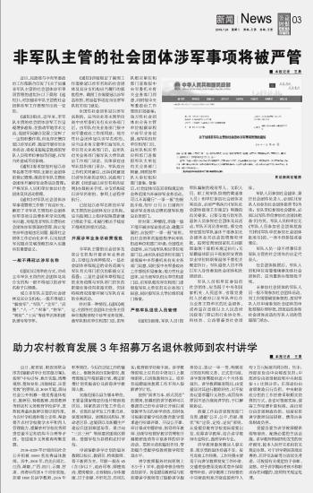 非軍隊(duì)主管的社會(huì)團(tuán)體涉軍事項(xiàng)將被嚴(yán)管