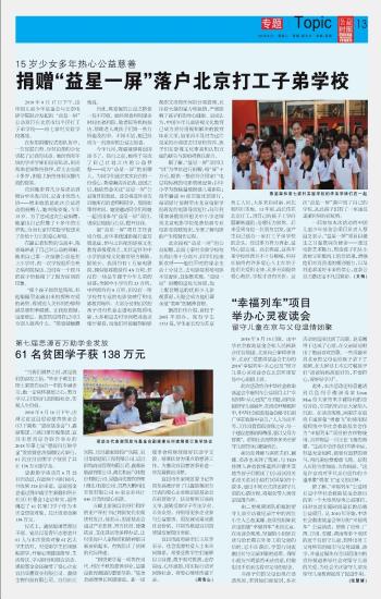 捐贈“益星一屏”落戶北京打工子弟學(xué)校