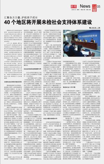40個地區(qū)將開展未檢社會支持體系建設