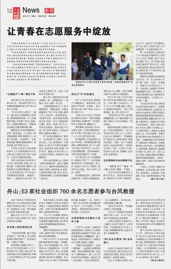 舟山:53家社會(huì)組織760余名志愿者參與臺(tái)風(fēng)救援