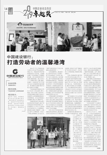 中國建設銀行:打造勞動者的溫馨港灣
