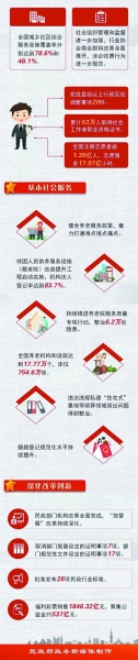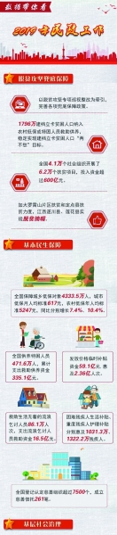 “民政工作關(guān)系民生、連著民心,是社會(huì)建設(shè)的兜底性、基礎(chǔ)性工作。”2019年4月2日在北京召開(kāi)的第十四次全國(guó)民政會(huì)議,傳達(dá)了習(xí)近平總書(shū)記對(duì)民政工作作出的重要指示。 認(rèn)真貫徹習(xí)近平總書(shū)記重要指示精神,一年來(lái),各級(jí)民政部門(mén)緊緊圍繞中心、堅(jiān)決服務(wù)大局,深化改革創(chuàng)新,各項(xiàng)工作取得新進(jìn)展、新成效。 兜底保障能力明顯增強(qiáng) 河北、廣西等創(chuàng)新落實(shí)特殊困難群體“單人戶”低保政策,云南系統(tǒng)規(guī)范完善農(nóng)村低保制度,陜西統(tǒng)籌構(gòu)建“六張保障網(wǎng)”,甘肅、青海等部署開(kāi)展脫貧攻堅(jiān)沖刺清零篩查專項(xiàng)行動(dòng)。加大羅霄山片區(qū)扶貧和定點(diǎn)扶貧縣扶貧力度,江西遂川縣、蓮花縣實(shí)現(xiàn)脫貧摘帽…… 2019年,聚焦打贏精準(zhǔn)脫貧攻堅(jiān)戰(zhàn),民政兜底保障能力明顯提升—— 出臺(tái)加強(qiáng)分散供養(yǎng)特困人員照料服務(wù)、強(qiáng)化臨時(shí)救助兜底保障政策;將資金和各項(xiàng)政策措施向“三區(qū)三州”等深度貧困地區(qū)傾斜;深入開(kāi)展農(nóng)村低保專項(xiàng)整治; 廣泛引導(dǎo)和動(dòng)員社會(huì)組織特別是慈善組織參與脫貧攻堅(jiān),全國(guó)4.1萬(wàn)個(gè)社會(huì)組織開(kāi)展6.2萬(wàn)個(gè)扶貧項(xiàng)目,投入資金超過(guò)600億元; …… 各地民政部門(mén)群策群力,發(fā)達(dá)省份加強(qiáng)對(duì)口幫扶,貧困地方聚力攻堅(jiān),1796萬(wàn)建檔立卡貧困人口納入農(nóng)村低?;蛱乩藛T救助供養(yǎng),繼續(xù)保持農(nóng)村低保標(biāo)準(zhǔn)動(dòng)態(tài)達(dá)到或超過(guò)國(guó)家扶貧標(biāo)準(zhǔn)。 在全力做好脫貧攻堅(jiān)工作的同時(shí),民政部門(mén)穩(wěn)步提升基本民生保障水平,更好滿足廣大困難群眾和特殊群體的基本需求—— 加大對(duì)生活困難下崗失業(yè)人員基本生活的保障力度,針對(duì)部分食品價(jià)格上漲,及時(shí)啟動(dòng)社會(huì)救助和保障標(biāo)準(zhǔn)與物價(jià)上漲掛鉤聯(lián)動(dòng)機(jī)制; 建立事實(shí)無(wú)人撫養(yǎng)兒童國(guó)家保障制度,填補(bǔ)了兒童福利領(lǐng)域制度的空白,大約50萬(wàn)事實(shí)無(wú)人撫養(yǎng)兒童從2020年1月1日起將獲得由政府發(fā)放的基本生活補(bǔ)貼; 聯(lián)合財(cái)政部、中國(guó)殘聯(lián)建立殘疾人兩項(xiàng)補(bǔ)貼標(biāo)準(zhǔn)動(dòng)態(tài)調(diào)整機(jī)制,分別涉及1000多萬(wàn)、1300多萬(wàn)殘疾人; 加大慈善事業(yè)促進(jìn)力度,截至2019年11月底,全國(guó)登記認(rèn)定慈善組織超過(guò)7500個(gè),成立慈善信托261筆。 基層社會(huì)治理進(jìn)一步夯實(shí) 10月29日下午5點(diǎn),貴州都勻市,幾十個(gè)小學(xué)生陸續(xù)放學(xué),來(lái)到了思源社區(qū)辦公樓。在閱覽室里,都勻市十三小學(xué)二年級(jí)一班的彭興寶拿出作業(yè)本,寫(xiě)了一會(huì)兒,“小黑甲”指出了他的一處錯(cuò)誤。 “穿‘小黑甲’的都是‘四點(diǎn)半課堂’的社工?!痹诙紕蚴忻裾种С窒?,24名社工來(lái)到社區(qū),承擔(dān)了課外輔導(dǎo)老師的角色。 夯基礎(chǔ),強(qiáng)基層,是近年來(lái)民政工作的一項(xiàng)重點(diǎn)。 2019年,民政部門(mén)強(qiáng)化黨領(lǐng)導(dǎo)基層群眾自治和社會(huì)組織管理,基層社會(huì)治理進(jìn)一步夯實(shí)—— 實(shí)施城鄉(xiāng)社區(qū)服務(wù)體系建設(shè)規(guī)劃,加快發(fā)展社區(qū)生活性服務(wù),截至2019年11月底,全國(guó)城鄉(xiāng)社區(qū)綜合服務(wù)設(shè)施覆蓋率分別達(dá)到78.6%和46.1%; 強(qiáng)化社會(huì)組織管理和監(jiān)督,出臺(tái)加強(qiáng)社會(huì)組織政治建設(shè)、規(guī)范行業(yè)協(xié)會(huì)商會(huì)涉企收費(fèi)等政策規(guī)定,全面推開(kāi)行業(yè)協(xié)會(huì)商會(huì)脫鉤改革,常態(tài)化公開(kāi)社會(huì)組織違法失信名單信息; 社工人才隊(duì)伍和志愿者隊(duì)伍建設(shè)取得新進(jìn)展,舉辦首次高級(jí)社會(huì)工作師考試,志愿服務(wù)隊(duì)伍持續(xù)壯大,截至12月20日,全國(guó)注冊(cè)志愿者逾1.39億,志愿服務(wù)18億小時(shí); …… 行政區(qū)劃調(diào)整和地名清理規(guī)范,也是社會(huì)各界尤其是基層群眾關(guān)注的一項(xiàng)重要工作。 2019年,民政部門(mén)報(bào)請(qǐng)國(guó)務(wù)院批準(zhǔn)縣級(jí)以上行政區(qū)劃調(diào)整事項(xiàng)20件,優(yōu)化8個(gè)大中城市市轄區(qū)規(guī)模結(jié)構(gòu),新增12個(gè)中小城市,探索特大鎮(zhèn)設(shè)市模式,建成并上線了中國(guó)·國(guó)家地名信息庫(kù);聯(lián)合舉辦《中國(guó)地名大會(huì)》;完成14條省界聯(lián)檢和3條省界界樁更換。 基本社會(huì)服務(wù)水平更大幅度提升 “婚姻登記的效率那叫一個(gè)‘十分快’?!苯衲?月14日,在廣州市白云區(qū)民政局婚姻登記處的服務(wù)大廳,王佳和妻子手捧大紅色的結(jié)婚證,幸福滿滿。 “早就想到今天會(huì)人山人海,以為會(huì)排很長(zhǎng)時(shí)間的隊(duì),真想不到會(huì)這么快,還不用花一分錢(qián)?!蓖跫验_(kāi)心地說(shuō)。 “全城通辦”、網(wǎng)上預(yù)約讓婚姻登記“快”了,取消婚姻登記費(fèi)則