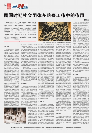 民國時期社會團(tuán)體在防疫工作中的作用