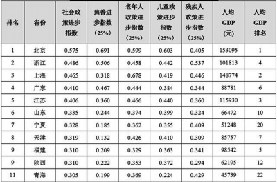 ■ 本報(bào)記者 文梅 2020年5月18日,由北京師范大學(xué)中國公益研究院研發(fā)的“中國社會政策進(jìn)步指數(shù)2020”在京發(fā)布。 “中國社會政策進(jìn)步指數(shù)2020”是北京師范大學(xué)中國公益研究院運(yùn)用指數(shù)工具對2018年全國31個(gè)省級行政區(qū)(不含港澳臺地區(qū))的慈善、老年人、兒童、殘疾人政策實(shí)施和創(chuàng)新情況進(jìn)行評價(jià),旨在推動社會政策的不斷創(chuàng)新、優(yōu)化和進(jìn)步。 “中國社會政策進(jìn)步指數(shù)2020”顯示:2018年,在國家政策推動下,慈善事業(yè)規(guī)范有序發(fā)展,慈善事業(yè)的經(jīng)濟(jì)和社會價(jià)值進(jìn)一步發(fā)揮;老齡事業(yè)和養(yǎng)老服務(wù)取得了突出成績,老年人政策隨著經(jīng)濟(jì)和社會的快速發(fā)展不斷進(jìn)步;兒童福利與保護(hù)制度建設(shè)快速發(fā)展,兒童發(fā)展及權(quán)利保護(hù)等各方面工作持續(xù)推進(jìn);殘疾人權(quán)益保障制度不斷完善,殘疾兒童康復(fù)救助制度全面出臺,殘疾人生存發(fā)展?fàn)顩r顯著改善。 2018年,中國社會政策進(jìn)步指數(shù)排名前十位的省份依次是:北京、浙江、上海、廣東、江蘇、山東、寧夏、天津、福建、陜西。 北京多項(xiàng)政策全國領(lǐng)先 北京連續(xù)七年穩(wěn)居第一,多項(xiàng)政策全國領(lǐng)先。2018年,北京在國內(nèi)率先開通非營利組織免稅資格線上申請,簡化了申請流程,為非營利組織免稅資格申請?zhí)峁┍憷?。進(jìn)一步加強(qiáng)收養(yǎng)登記管理工作、規(guī)范收養(yǎng)行為,將留守兒童關(guān)愛保護(hù)工作納入財(cái)政預(yù)算,建立跨部門、多專業(yè)的未成年人檢察工作社會支持體系。2012~2018年,北京連續(xù)七年穩(wěn)居社會政策進(jìn)步指數(shù)第一名,在慈善、老年人、兒童和殘疾人四個(gè)領(lǐng)域均位列前十。 浙江、上海連續(xù)七年排名前三,各領(lǐng)域發(fā)展均衡。2018年,浙江備案慈善信托財(cái)產(chǎn)總規(guī)模達(dá)9.3億元,位列全國首位。備案17單慈善信托、彩票公益金人均貢獻(xiàn)額為83.0元,均位列全國第二;上海高齡津貼覆蓋率、老齡補(bǔ)貼人數(shù)占老年人比例、老年人福利支出占民政事業(yè)費(fèi)總支出均全國領(lǐng)先。在全國范圍內(nèi)率先出臺3歲以下幼兒托育服務(wù)“1+2”文件,鼓勵多方共建托育服務(wù)體系,推動托育服務(wù)的標(biāo)準(zhǔn)化發(fā)展。2012~2018年,浙江、上海續(xù)七年排名社會政策進(jìn)步指數(shù)前三,在慈善、老年人、兒童和殘疾人四個(gè)領(lǐng)域均位列前十。 江蘇連續(xù)七年位列前五,社會組織快速增長。2018年,江蘇社會組織增速明顯,每萬人擁有11.2個(gè)社會組織,位列全國首位。同時(shí)加強(qiáng)學(xué)前教育綜合獎補(bǔ)資金管理與對民辦教育的扶持力度。2012~2018年,江蘇連續(xù)七年位列社會政策進(jìn)步指數(shù)前五,在慈善、兒童和殘疾人三個(gè)領(lǐng)域均位列前十,在老年人領(lǐng)域2014~2018年連續(xù)五年位列前十。 廣東、山東、寧夏、天津、福建、陜西均多次進(jìn)入前十。2018年,廣東在慈善、老年人、兒童和殘疾人四個(gè)領(lǐng)域均位列前十,779個(gè)社會組織獲得公益性捐贈稅前扣除資格、“中國捐贈百杰榜”上榜39人,均位列全國首位;山東在慈善、老年人、兒童三個(gè)領(lǐng)域位列前十,先后編制《養(yǎng)老機(jī)構(gòu)等級劃分》《養(yǎng)老機(jī)構(gòu)設(shè)施設(shè)備配置規(guī)范》等17個(gè)養(yǎng)老服務(wù)地方標(biāo)準(zhǔn),加快養(yǎng)老服務(wù)標(biāo)準(zhǔn)化建設(shè)步伐;天津在老年人、兒童領(lǐng)域位列前十,農(nóng)村低保標(biāo)準(zhǔn)占當(dāng)?shù)剞r(nóng)村居民人均消費(fèi)支出比重全國最高,達(dá)65.5%;寧夏在殘疾人領(lǐng)域位列前十,是繼上海后第二個(gè)以省級政府名義對貫徹落實(shí)《殘疾預(yù)防和殘疾人康復(fù)條例》作出具體部署的省份;福建在殘疾人領(lǐng)域位列前十,農(nóng)村貧困殘疾人家庭危房改造戶均投入資金為1.9萬元,位列全國第四;陜西在慈善領(lǐng)域位列前十,社會組織就業(yè)貢獻(xiàn)率達(dá)1.44%,居全國首位。 七年積累呈現(xiàn)三大特點(diǎn) 縱觀2012年至2018年中國社會政策進(jìn)步指數(shù)排名結(jié)果,七年指數(shù)變化呈現(xiàn)三大特點(diǎn)。 第一,北京連續(xù)七年穩(wěn)居榜首,上海江蘇浙江山東廣東連續(xù)七年位列前十。北京、上海、江蘇、浙江、山東、廣東6個(gè)東部省份連續(xù)七年進(jìn)入社會政策進(jìn)步指數(shù)排名的前十位,其中北京連續(xù)七年穩(wěn)居榜首。 第二,指數(shù)排名東部地區(qū)位居前列、西部地區(qū)有亮點(diǎn)。對比2012~2018年社會政策進(jìn)步指數(shù)排名結(jié)果,排名進(jìn)入前十的省份共20個(gè)。其中,東部地區(qū)占9席,中部地區(qū)占3席,西部地區(qū)占7席,東北地區(qū)占1席。地區(qū)排名位次有波動,地區(qū)排名走勢不同,地區(qū)內(nèi)部存在分化。 第三,經(jīng)濟(jì)水平影響社會政策發(fā)展,但不是唯一決定因素。2012~2018年,東部地區(qū)社會政策進(jìn)步與人均GDP發(fā)展水平比較一致,指數(shù)排名顯著高于人均GDP排名的省份主要集中在中西部地區(qū),如山西、四川、貴州、云南、甘肅等。