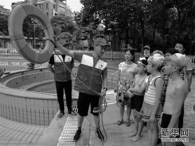長(zhǎng)興縣紅十字會(huì)應(yīng)急救援人員教授如何用救生圈救溺水者。浙江省湖州市長(zhǎng)興縣雉城街道在水木花都社區(qū)開(kāi)展“暑期防溺水教育進(jìn)社區(qū)”主題活動(dòng),用通俗易懂的方式在轄區(qū)的幼兒園、小學(xué)等開(kāi)展溺水救援知識(shí)教學(xué),把相關(guān)應(yīng)急救援知識(shí)教給孩子和家長(zhǎng),為孩子們的暑期生活護(hù)航。