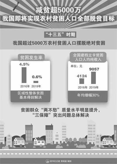 今年國慶節(jié)前,彝族群眾沙馬作葉搬到了四川昭覺縣易地扶貧搬遷安置點沐恩邸社區(qū)。新居周邊,已建起服裝廠、口罩廠、塑鋼廠,城外還有四川攀西地區(qū)最大的農(nóng)業(yè)產(chǎn)業(yè)園,去往廣東的勞務輸送專車,載著年輕人奔向遠方。 像沙馬作葉一樣,“十三五”時期我國超過5000萬農(nóng)村貧困人口擺脫絕對貧困。貧困發(fā)生率從2016年的4.5%下降至2019年的0.6%,區(qū)域性整體貧困基本得到解決。 “十三五”時期,我國貧困人口收入大幅增加。全國貧困人口建檔立卡數(shù)據(jù)顯示,全國建檔立卡貧困人口人均純收入由2016年的4124元增加到2019年的9057元,年均增幅30%。貧困群眾“兩不愁”質(zhì)量水平明顯提升,“三保障”突出問題總體解決。 “十三五”時期,我國貧困人口收入結(jié)構(gòu)進一步優(yōu)化,自主脫貧能力穩(wěn)步提高。貧困人口主要通過務工和生產(chǎn)勞動實現(xiàn)脫貧,勞動收入占比逐年提升,非勞動收入占比逐年下降,增收可持續(xù)性穩(wěn)步提高。 “十三五”時期,我國以前所未有的力度和規(guī)模推進脫貧攻堅,每年就打贏脫貧攻堅戰(zhàn)召開座談會,針對不同階段面臨的不同問題,部署脫貧攻堅目標任務,力度之大、規(guī)模之廣、成效之顯著、影響之深遠,前所未有、世所罕見,創(chuàng)造了人類減貧史上的奇跡。 今年全面脫貧目標完成后,中國將提前10年實現(xiàn)聯(lián)合國2030年可持續(xù)發(fā)展議程的減貧目標。在聯(lián)合國成立75周年之際,近日舉行的“聯(lián)合國2030年可持續(xù)發(fā)展目標與中國減貧經(jīng)驗”線上研討會上,聯(lián)合國前秘書長潘基文表示,中國非凡的發(fā)展進程在全球范圍內(nèi)為實現(xiàn)聯(lián)合國千年發(fā)展目標作出了巨大貢獻。 (據(jù)新華社) |