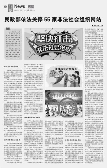 民政部依法關(guān)停55家非法社會(huì)組織網(wǎng)站