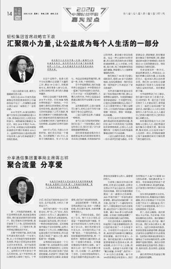 我們每個人生活當(dāng)中每一點(diǎn)每一滴都可以和公益發(fā)生關(guān)系,我們有幸這幾年打造了輕松集團(tuán)這樣一個平臺,讓大家通過平臺分享感受公益和實(shí)踐公益。 一是公益的參與者,微笑力量凝聚至善大愛。 輕松公益2016年成為民政部指定的首批慈善組織公開募捐信息平臺之一,在凝聚社會愛心做公益這一塊做出了一定的貢獻(xiàn)。 2019年全年,20家互聯(lián)網(wǎng)公募平臺發(fā)布互聯(lián)網(wǎng)募捐信息2.3萬條,獲得超過百億人次的關(guān)注和參與,網(wǎng)絡(luò)募捐總額超過54億元,同比2018年增長70.4%。近3年來,中國通過互聯(lián)網(wǎng)募集的善款每年增長率都在20%以上。這說明科技在公益實(shí)踐過程中給所有人參與和奉獻(xiàn)提供了有效的推動。 在這個過程中,很多大的平臺比如騰訊公益做了大量的工作,推出99公益日,用配捐的方式,吸引更多人參與公益。從增長曲線來看,參與的人數(shù)越來越多。 輕松公益也做了很多事情。2018年4月份,日本NHK電視臺曾經(jīng)報(bào)道了一則消息,一個白血病小孩到北京來看病,因?yàn)榧依锔F沒有錢,通過我們的平臺幾天的時(shí)間募集了上百萬善款,幫助小孩解決了大病救助的問題。我們國家科技的發(fā)展和民眾愛心的凝聚已經(jīng)到了國外媒體關(guān)注的程度,這是我們非??上驳某煽?。 2019年4月份,大涼山火災(zāi)的時(shí)候,我們當(dāng)天發(fā)起一個募捐,當(dāng)天就募集了450萬元,支持了當(dāng)?shù)氐木葹?zāi)。有17萬人參與,而且這些都是普通百姓,都是一塊、五塊、十塊錢捐的。 在今年疫情期間,我們也跟華僑公益基金會、中華慈善總會一起做了很多抗疫的公益活動。1月23日這一天發(fā)起的募捐,大概幾天的時(shí)間,華僑公益基金會就通過我們的平臺募集了近800萬元。 這些數(shù)據(jù)說明,公益大家都可以參與,輕松公益平臺給大家提供了參與公益的機(jī)會。 二是公益的受益者,行善是一種輪回。 參與公益之后如何回饋呢?我們打造了一個輕松模式,我們是科技公司,我們打造了全生命周期健康管理體系。 我們深深地感覺現(xiàn)在的大病救助是事后的救助如果事先關(guān)注自己的健康,有效地保護(hù)自己的身體,就會減少事后的救助,也是一種公益的付出和貢獻(xiàn),所以我們現(xiàn)在做生命全周期的健康管理,讓人少犯病,少得病,得小病,得了病能夠得到迅速的康復(fù),幫助愛心人士能夠有健康的身體。 我們捐出了400多萬份愛心保險(xiǎn)項(xiàng)目,得到300多個品牌的響應(yīng),也給疫情期間一線的民眾和一線的醫(yī)護(hù)工作者送去了安全的保護(hù)。 另外我們跟華僑基金會發(fā)起了輕松籌病房圖書館、愛心之屋等夠公益項(xiàng)目。為貧困的癌癥患者家庭建設(shè)一個關(guān)愛的空間,讓他自己能夠照顧自己;捐出了幾百萬冊圖書和幾千輛公益圖書車,讓住院的白血病兒童能夠吸取一些知識,增加一些能量,抗擊病魔。 針對公眾對互聯(lián)網(wǎng)捐贈善款的用途和信息透明的問題,我們在2017年首先利用了區(qū)塊鏈技術(shù)來管理善款,讓愛心人士捐贈的每一分錢的去向和用途能夠通過我們平臺去追溯。 三是公益的傳承者,傳遞每一份不動聲色的愛與感動。中華慈善總會、瀟影集團(tuán)、輕松集團(tuán)聯(lián)合推動了善濟(jì)病困工程,瀟影集團(tuán)的電影《半條棉被》,每張票捐出0.3元給到慈善總會,幫助貧困地區(qū)大病的百姓。 傳承還有另外一種方式,就是把推動藝人、明星站臺,讓他們傳播公益的力量,讓關(guān)注他們的人一起來加入到公益的事業(yè)里。我們的123輕松公益盛典就推動了很多藝人給他們參與的公益項(xiàng)目站隊(duì),來傳播愛的力量。 今年疫情帶動了社工建設(shè),我們跟中國社會工作聯(lián)合會、《公益時(shí)報(bào)》等一起打造了全國醫(yī)務(wù)社工人才建設(shè)項(xiàng)目,希望通過社工一起把公益項(xiàng)目推廣到全社會,我們要讓人人可公益發(fā)展到人人參與公益,讓人人通過自己的指尖隨時(shí)把自己的那份愛心奉獻(xiàn)出去。 輕松集團(tuán)到現(xiàn)在為止已經(jīng)擁有6億愛心人士,我們想通過他們聚合小愛成大愛,聚沙成塔,聚水成河,讓公益成為每個人生活的一部分,實(shí)現(xiàn)輕松集團(tuán)讓每個家庭都有面對大病的勇氣和力量的宗旨。 |