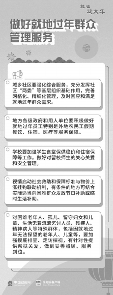 ■ 本報記者 王勇 近日,中共中央辦公廳、國務(wù)院辦公廳印發(fā)《關(guān)于做好人民群眾就地過年服務(wù)保障工作的通知》,要求針對因疫情防控需要就地過年群眾增加的新情況,抓緊做好各項服務(wù)保障工作,讓人民群眾度過歡樂祥和、健康安全的新春佳節(jié)。 為做好相關(guān)工作,民政部連續(xù)下發(fā)了關(guān)于做好疫情防控和進一步做好春節(jié)期間困難群眾基本生活保障以及人民群眾就地過年服務(wù)保障工作的通知,都明確要求對空巢老人、留守兒童這兩類特殊困難群體有針對性的提供幫扶。 為了能夠讓這些特殊困難群體過一個安全、舒心、祥和的節(jié)日,各級民政部門正在當(dāng)?shù)攸h委政府統(tǒng)一指揮下,采取了一系列的關(guān)愛措施,開展了一系列的關(guān)愛行動。 關(guān)愛農(nóng)村留守兒童 日前,民政部下發(fā)《關(guān)于加強寒假春節(jié)期間父母就地過年農(nóng)村留守兒童關(guān)愛服務(wù)工作的通知》(以下簡稱《通知》)。 《通知》要求,鄉(xiāng)鎮(zhèn)(街道)人民政府、村(居)民委員會要組織兒童督導(dǎo)員、兒童主任切實擔(dān)起職責(zé)、發(fā)揮作用,春節(jié)前夕對父母雙方均就地過年的農(nóng)村留守兒童情況至少開展1次集中摸底。要切實強化監(jiān)護責(zé)任落實,確保每一名父母就地過年的農(nóng)村留守兒童都有明確的被委托照護人妥善照料。村(居)民委員會要組織兒童主任詳細(xì)了解被委托照護人身體狀況和監(jiān)護能力,指導(dǎo)被委托照護人履行照護職責(zé);對因年齡、身體等原因?qū)е虏荒苈男姓兆o職責(zé)的,要及時督促父母更換被委托照護人,如因現(xiàn)實困難一時難以更換的,民政部門要第一時間協(xié)調(diào)落實臨時照護職責(zé)。 《通知》明確,各級民政部門要將父母就地過年的農(nóng)村留守兒童作為關(guān)愛服務(wù)的重點對象,引導(dǎo)務(wù)工父母采取電話、視頻等方式與留守兒童遠(yuǎn)程“見面談心”,切實做到“人在外,愛回家”。對因家庭缺乏通信視頻設(shè)備或操作不熟練等原因?qū)е虏荒苓M行視頻的,村(居)民委員會和兒童主任要及時提供幫助。要統(tǒng)籌志愿者、社會工作者等多方力量,為農(nóng)村留守兒童提供學(xué)習(xí)輔導(dǎo)、心理疏導(dǎo)等服務(wù),幫助其過好春節(jié)、過好寒假。 《通知》指出,各級民政部門要協(xié)調(diào)將農(nóng)村留守兒童關(guān)愛保護納入當(dāng)?shù)芈?lián)防聯(lián)控工作機制統(tǒng)一部署,重點給予關(guān)心關(guān)愛。要結(jié)合摸底排查、“政策宣講進村(居)”等活動,開展疫情防控知識宣傳,督促引導(dǎo)被委托照護人加強對兒童疫情防控知識教育,提高防護能力,盡量做到少外出、少訪親、不聚堆。兒童及其家庭在疫情防控物資等方面確有困難的,民政部門、鄉(xiāng)鎮(zhèn)(街道)人民政府、村(居)民委員會要及時提供相關(guān)支持。 《通知》強調(diào),各級民政部門要認(rèn)真貫徹落實民政部、公安部、衛(wèi)生健康委等部門《關(guān)于做好因突發(fā)事件影響造成監(jiān)護缺失未成年人救助保護工作的意見》要求,加強寒假春節(jié)期間監(jiān)護缺失未成年人救助保護工作。新冠肺炎疫情防控期間,對父母及其他監(jiān)護人或被委托照護人因確認(rèn)感染治療、集中隔離觀察,或因防疫抗疫工作需要以及其他疫情影響不能完全履行監(jiān)護和撫養(yǎng)責(zé)任的,民政部門要落實臨時照護職責(zé)。 《通知》還對寒假春節(jié)期間仍對農(nóng)村留守兒童提供留宿服務(wù)照護機構(gòu)的情況摸排和監(jiān)管作了部署。 開展關(guān)愛行動 除了《通知》要求開展的工作之外,民政部兒童福利司司長郭玉強在1月27日國務(wù)院聯(lián)防聯(lián)控機制舉行的新聞發(fā)布會上還表示,為了能夠讓空巢老人、留守兒童等特殊困難群體過一個安全、舒心、祥和的節(jié)日,各級民政部門正在當(dāng)?shù)攸h委政府統(tǒng)一指揮下,采取了一系列的關(guān)愛措施,開展了一系列的關(guān)愛行動。 第一,做好摸底排查。各地在春節(jié)前夕進一步對本地的空巢老人、留守兒童情況進行了排查。在已有數(shù)據(jù)的基礎(chǔ)上,進一步摸清這兩類群體的詳細(xì)底數(shù)、家庭狀況、外出勞力務(wù)工情況等。 第二,加強分類幫扶指導(dǎo)。主要做了四個方面的工作: 一是指導(dǎo)村(居)委會加強空巢老人、留守兒童這兩類群體的定期探訪,特別是發(fā)揮村居委會干部、兒童主任、兒童督導(dǎo)員在一線、接地氣、熟悉村(居)的工作優(yōu)勢,及時了解需求,反映情況,提供幫助。 二是落實救助保障政策,為受疫情影響的困難老年人提供包括生活照料在內(nèi)的各種服務(wù)。同時,要求各地在疫情防控期間,優(yōu)化簡化事實無人撫養(yǎng)兒童、孤兒和其他困境兒童認(rèn)定審核審批程序,對于符合條件的,要求做到當(dāng)月申請、當(dāng)月審批、當(dāng)月發(fā)放生活保障金。 三是強化家庭監(jiān)護指導(dǎo),明確要求外出務(wù)工人員要確定一名符合條件的照護人代為照護留守兒童,因現(xiàn)實困難難以明確的,要向村(居)委會進行報告,村(居)委會要指定具有資格的照護人對留守兒童進行照護,確保留守兒童得到妥善的照顧。 四是倡導(dǎo)就地過年外出務(wù)工人員