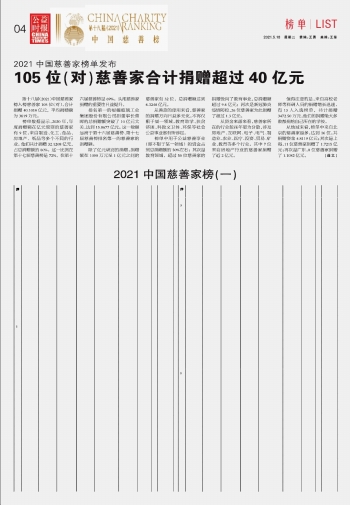 105位(對)慈善家合計(jì)捐贈(zèng)超過40億元