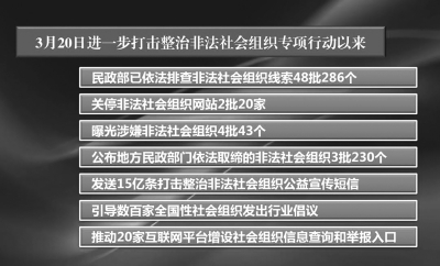 非法社會(huì)組織為了迷惑公眾,從名稱、組織架構(gòu)等各個(gè)方面都模仿合法登記的社會(huì)組織,如果不注意觀察,難以識(shí)別,公眾很可能被騙。 民政部等22個(gè)部門聯(lián)合發(fā)布《關(guān)于鏟除非法社會(huì)組織滋生土壤 凈化社會(huì)組織生態(tài)空間的通知》,全面加強(qiáng)對各類合法主體的管理,力求通過管住合法,達(dá)到制止非法的目的。 前不久,北京市民政局依法對非法社會(huì)組織“中國國學(xué)院大學(xué)”及下設(shè)“中國國學(xué)院大學(xué)國醫(yī)藥生命科學(xué)院”“中國國學(xué)院大學(xué)國醫(yī)藥生命科學(xué)院量子醫(yī)學(xué)研究院”等70家分支機(jī)構(gòu)予以取締。 在我國經(jīng)濟(jì)社會(huì)發(fā)展過程中,社會(huì)組織發(fā)揮著重要作用,社會(huì)組織發(fā)展日趨規(guī)范。但與此同時(shí),像“中國國學(xué)院大學(xué)”這樣的非法社會(huì)組織活動(dòng)仍時(shí)有發(fā)生,一些非法社會(huì)組織在利益驅(qū)動(dòng)下,不斷變換手法,以假亂真、招搖撞騙。 包裝“高大上”,活動(dòng)“蹭熱點(diǎn)”,非法社會(huì)組織用各種方式騙取信任。 “中國國學(xué)院大學(xué)”對外宣稱是有關(guān)部委批準(zhǔn)成立的傳統(tǒng)文化高端教育學(xué)府,以“弘揚(yáng)國學(xué)、傳承文化”為主要內(nèi)容,并被納入“聯(lián)合國全球和諧聯(lián)盟、世界和諧基金會(huì)”,向世界各國輸送“和諧大使、文化干部”,是“目前國內(nèi)外唯一具有授國學(xué)學(xué)士、碩士、博士學(xué)位的國際連鎖型文化教育實(shí)體學(xué)院”。 為了加深公眾印象、增加可信度,“中國國學(xué)院大學(xué)”甚至偽造了國家部委公文、登記證書,還私刻印章,發(fā)布帶有“中國國學(xué)院大學(xué)”字樣的所謂“紅頭文件”。但實(shí)際上,該組織的唯一目的就是斂財(cái),通過設(shè)立機(jī)構(gòu)、舉辦揭牌儀式、頒獎(jiǎng)活動(dòng)等各種方式收取費(fèi)用。直至案發(fā),“中國國學(xué)院大學(xué)”已經(jīng)在北京、天津、廣東、山東、湖南等地建立了多達(dá)70家的分支機(jī)構(gòu)。 北京市民政局執(zhí)法人員上門取締時(shí),“中國國學(xué)院大學(xué)”下設(shè)的兩個(gè)分支機(jī)構(gòu)辦公地點(diǎn)早已人去樓空,但門前依然懸掛著“中國國學(xué)院大學(xué)國醫(yī)藥生命科學(xué)院”“中國國學(xué)院大學(xué)國醫(yī)藥生命科學(xué)院量子醫(yī)學(xué)研究院”牌子。進(jìn)入門廳,墻上張貼著大幅宣傳海報(bào),介紹“量子科學(xué)”在醫(yī)學(xué)上的應(yīng)用,并宣稱“能快速、安全、溫和根治疾病、逆轉(zhuǎn)衰老”。 “很多非法社會(huì)組織往往冠以‘中國’‘中華’‘全國’‘世界’等名頭,令人難辨真假?!鄙虾K山瓍^(qū)讀者趙琴就曾見過非法社會(huì)組織的宣傳,他們有的選擇在黨政機(jī)關(guān)辦公地附近或附屬場所租用辦公場地,有的拉攏一些退休黨政干部或社會(huì)名人為其“站臺(tái)”,還有的運(yùn)用各種手段宣傳“貼金”,“甚至有些非法社會(huì)組織在名稱上與合法登記的社會(huì)組織僅一字之差,網(wǎng)頁宣傳上抄襲合法社會(huì)組織的官網(wǎng)內(nèi)容,更增加了迷惑性”。 除了讓人眼花繚亂的宣傳手法,非法社會(huì)組織的各種活動(dòng)都會(huì)“蹭熱點(diǎn)”,而且組織形式種類繁多?!八麄兩朴诖颉吝吳颉?,以此吸引眼球。”北京市互聯(lián)網(wǎng)金融行業(yè)協(xié)會(huì)黨委書記許澤瑋遇到過打著“協(xié)會(huì)”旗號的詐騙組織,“這些非法社會(huì)組織或以‘協(xié)會(huì)’‘促進(jìn)會(huì)’‘聯(lián)合會(huì)’‘基金會(huì)’等傳統(tǒng)社會(huì)組織形式活動(dòng),或以‘委員會(huì)’‘發(fā)展局’‘中心’等類似政府機(jī)關(guān)和事業(yè)單位的組織形式活動(dòng),防不勝防”。 “有的非法社會(huì)組織千方百計(jì)掛靠到合法登記的社會(huì)組織名下,變身為分支機(jī)構(gòu);有的與合法社會(huì)組織共同開展活動(dòng);有的想方設(shè)法成為事業(yè)單位的下設(shè)機(jī)構(gòu),魚目混珠?!痹S澤瑋提醒道,“公眾應(yīng)該多留幾個(gè)心眼,尤其當(dāng)被索取一定金額的費(fèi)用時(shí),不要盲目輕信”。 對照合法登記名單識(shí)別非法社會(huì)組織,提高防范意識(shí),防止被騙。 非法社會(huì)組織為了迷惑公眾,從名稱、組織架構(gòu)等各個(gè)方面都模仿合法登記的社會(huì)組織,如果不注意觀察、識(shí)別,公眾很可能被騙。 今年3月,民政部等22個(gè)部門聯(lián)合發(fā)布《關(guān)于鏟除非法社會(huì)組織滋生土壤 凈化社會(huì)組織生態(tài)空間的通知》(以下簡稱《通知》),根據(jù)近年來非法社會(huì)組織活動(dòng)的新特點(diǎn)和新動(dòng)向,從切斷非法社會(huì)組織的營養(yǎng)來源入手,對非法社會(huì)組織開展活動(dòng)所需要的場所、空間、宣傳渠道、人員支持等各個(gè)環(huán)節(jié)進(jìn)行封堵,對非法社會(huì)組織活動(dòng)可能涉及的單位和個(gè)人提出明確的禁止性規(guī)定,全面加強(qiáng)對各類合法主體的管理,力求通過管住合法,達(dá)到制止非法的目的。 “為了更好地提高社會(huì)公眾對非法社會(huì)組織的防范意識(shí),《通知》專門強(qián