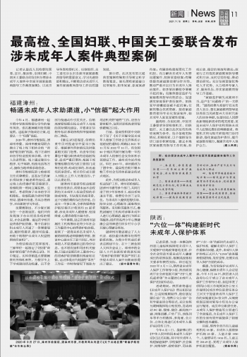 最高檢、全國婦聯(lián)、中國關(guān)工委聯(lián)合發(fā)布涉未成年人案件典型案例