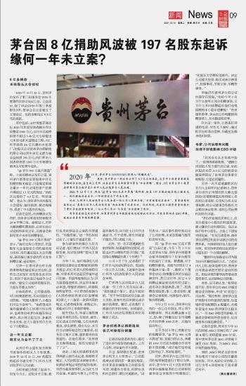 茅臺因8億捐助風(fēng)波被197名股東起訴 緣何一年未立案?