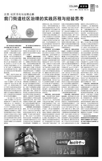 前門街道社區(qū)治理的實(shí)踐歷程與經(jīng)驗(yàn)思考