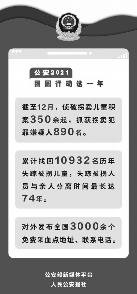 在四川省綿陽市公安局狹長的走廊通道里,王玉菊(化名)夫婦來回踱著步,焦急地等待著DNA比對結(jié)果。 32年里,王玉菊夫婦沒有停止過對雙胞胎女兒的尋找。得知公安機關(guān)正在全國范圍內(nèi)開展‘團圓’行動,他們馬上到當?shù)毓矙C關(guān)尋求幫助。 ‘每一個失散親人的家庭,都有一段不堪回首的尋親之苦和骨肉分離的思念之痛,都渴望早日找回親人、全家團圓。為離散家庭消除痛苦、實現(xiàn)團圓是我們公安機關(guān)的重大責任?!膊啃淌聜刹榫窒嚓P(guān)負責人說。 2021年,全國公安機關(guān)開展為期一年的‘團圓’行動,全力偵破拐賣兒童積案、全力緝捕拐賣兒童犯罪嫌疑人、全面查找失蹤被拐兒童。截至2021年12月,已找回歷年失蹤被拐兒童10932名。 “看到失散多年的家庭團聚,再苦再累都值得” “沒錯!就是她們!”經(jīng)過反復(fù)的遺傳信息核查和人像比對,最終確認福建汪銀銀(化名)和安徽趙珊(化名)的生物信息與王玉菊夫婦吻合,屬于親子關(guān)系。民警胡祥雨興奮地把檢驗結(jié)果第一時間告訴了王玉菊夫婦。 胡祥雨,來自綿陽市公安局刑偵支隊,主要負責打拐工作?!皥F圓”行動開展以來,為了讓群眾尋親更加方便,綿陽公安機關(guān)在重點地區(qū)成立了3個以打拐民警名字命名的反拐尋親工作室,“胡祥雨工作室”就是其中之一。以工作室為依托,截至2021年12月13日,胡祥雨和當?shù)卮蚬彰窬还矌椭?16個家庭實現(xiàn)了團圓。 汪銀銀和趙珊的信息雖然比對成功了,但還有一件事像一塊石頭一樣壓在胡祥雨心里?!罢业胶⒆又皇菑?fù)雜工作的第一步?!焙橛暾f。 原來,由于事發(fā)突然,汪銀銀和趙珊沒有思想準備,對認親抱有一些抵觸情緒。 胡祥雨反復(fù)通過短信、電話、微信聯(lián)系,并專程跑到福建、安徽,與汪銀銀和趙珊不斷溝通,解釋情況,終于獲得了她們的理解和信任。2021年10月30日,在綿陽公安的見證下,失散32年的王玉菊一家重獲團圓。 “感謝你們的辛苦付出,你們真是人民英雄!”王玉菊抱著兩個女兒,激動地對胡祥雨等民警表示感謝。 安徽省公安廳刑警總隊“打拐辦”負責人楊菁表示,“雖然大家長期超負荷工作,但每當看到失散多年的家庭團聚,再苦再累都值得!” “每位民警都承擔數(shù)項任務(wù),嚴格意義上的專職打拐民警沒有幾個人。大家的任務(wù)特別重,可就是在這種情況下,我們的民警依然奮戰(zhàn)在打拐工作第一線,為的就是努力讓更多家庭實現(xiàn)團圓?!睏钶冀榻B,很多民警發(fā)現(xiàn)了線索就住在當?shù)?,一遍遍地采集信息、血樣,反?fù)走訪摸排,如同是在找尋自己的親人。 “公安機關(guān)更加有能力、有條件承擔起這份重任” “團圓”行動中,找到的失蹤被拐人員與親人分離時間最長達74年。 “受限于技術(shù)條件等原因,以前很多失蹤被拐兒童案件沒有得到及時偵破。隨著DNA技術(shù)和人像比對技術(shù)不斷發(fā)展、公安辦案能力持續(xù)提升、打拐工作機制不斷完善,尤其是公安部部署開展命案積案攻堅行動以來,各地公安機關(guān)在組織指揮、技術(shù)支撐、區(qū)域協(xié)作等方面積累了豐富經(jīng)驗?!惫膊啃虃删指本珠L童碧山介紹。 人民群眾期盼的,人民警察一直沒有放棄?!艾F(xiàn)在,公安機關(guān)更加有能力、有條件主動承擔起這份重任?!蓖躺秸f。 “我覺得差不多了,肯定是這個!”參加“團圓”行動刑事技術(shù)集中比對會戰(zhàn)的民警李海燕很自信。 2021年5月的一天,天津市公安局刑偵總隊刑事技術(shù)專家呂游正拿著一張被拐男孩祁吉5歲時的照片在電腦屏幕前仔細做著對比,突然發(fā)現(xiàn)一名廣東省汕頭市的男子和祁吉的五官特征高度相似,馬上請李海燕幫忙聯(lián)系地方公安機關(guān)核查。 “通過對祁吉小時候的照片進行技術(shù)增強和清晰化處理,我們得到了200多個高度相似的照片,經(jīng)過兩天不斷甄別篩選,最終找到一個生物特征最符合的男孩,反復(fù)比對分析后,最終確認這個男孩就是祁澤華、龍大娥夫婦失散25年的兒子。”呂游說。 “人像比對技術(shù)之前不成熟,準確率低,沒有大范圍應(yīng)用在打拐領(lǐng)域,這幾年通過不斷迭代發(fā)展,人像比對技術(shù)準確率有了大幅提升。”2021年9月,呂游再次參加公安部組織的第二次技術(shù)比對會戰(zhàn),每天依舊工作近10個小時,查看上千張照片,但他覺得很有成就感,“我們甚至還比中過一張被拐兒童的百日照”。 同樣參加過技術(shù)比對會戰(zhàn)的公安部物證中心情報處處長劉冰介紹,將DNA技術(shù)與人像比對技術(shù)成功融合,是這次“團圓”行動最大的技術(shù)嘗試和突破,得到了“1+1>2”的效果。 據(jù)介紹,目前,我國DNA檢測技術(shù)和數(shù)據(jù)信息庫建設(shè)處于世界一流水平,檢驗方法穩(wěn)定可靠,識別準確率越來越高,為找到失蹤被拐兒童提供了強有力的支撐,成為這次“團圓”行動取得豐碩戰(zhàn)果的重要原因之一。 “繼續(xù)加大宣傳力度,幫助更多的離散家庭團聚” “團圓行動,免費采集DNA”“圓夢有路 助愛回家”“你和你的親人只差一滴血的距離”,在失蹤被拐兒童案件發(fā)生的重點地區(qū),經(jīng)常能看見印有這些宣傳標語的海報。 DNA檢測是最終認定失散家庭是否屬于親子關(guān)系的唯一辦法。但一直以來,警方掌握的血樣有限,給認定失蹤