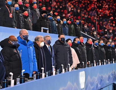 筑夢(mèng)冰雪,同向未來。2022年2月4日晚,舉世矚目的北京第二十四屆冬季奧林匹克運(yùn)動(dòng)會(huì)開幕式在國(guó)家體育場(chǎng)隆重舉行。國(guó)家主席習(xí)近平出席開幕式并宣布本屆冬奧會(huì)開幕。中華文明與奧林匹克運(yùn)動(dòng)再度攜手,奏響全人類團(tuán)結(jié)、和平、友誼的華美樂章。 李克強(qiáng)、栗戰(zhàn)書、汪洋、王滬寧、趙樂際、韓正、王岐山等黨和國(guó)家領(lǐng)導(dǎo)人,國(guó)際奧委會(huì)主席巴赫,以及來自世界各地的領(lǐng)導(dǎo)人和貴賓出席開幕式。 夜幕下的國(guó)家體育場(chǎng)華燈璀璨、美輪美奐,這座以鳥巢造型聞名于世的建筑,即將創(chuàng)造歷史,成為世界上首座舉辦過冬奧會(huì)和夏奧會(huì)“雙奧”開幕式的體育場(chǎng)館。 19時(shí)15分許,來自世界各地的國(guó)家元首、政府首腦、王室成員和國(guó)際組織負(fù)責(zé)人等貴賓陸續(xù)抵達(dá)。此時(shí)的金色大廳流光溢彩,充滿著春節(jié)喜慶氣氛和冬奧激情活力。 開幕式正式開始前,國(guó)家體育場(chǎng)氣氛熱烈。伴隨著歡快的音樂,來自北京、河北兩地的群眾來到場(chǎng)內(nèi),以質(zhì)樸而火熱的廣場(chǎng)舞表演笑迎八方賓朋。場(chǎng)地上巨大的“?!弊?,營(yíng)造出中國(guó)年的喜慶氛圍。大屏幕上,來自河北張家口、黑龍江哈爾濱、江蘇南京等國(guó)內(nèi)10座城市的群眾,向世界展現(xiàn)著中國(guó)“三億人參與冰雪運(yùn)動(dòng)”的熱忱和激情。聯(lián)合國(guó)秘書長(zhǎng)古特雷斯也發(fā)表了視頻致辭。場(chǎng)內(nèi)、場(chǎng)外,中國(guó)、世界,共同唱響“一起向未來”的冰雪歡歌。 19時(shí)57分,體育場(chǎng)中央上萬平方米冰雪晶瑩的巨幅地屏上出現(xiàn)“過年好”的中英文字樣。在《和平——命運(yùn)共同體》的樂曲聲中,習(xí)近平和夫人彭麗媛同巴赫等走上主席臺(tái),向觀眾揮手致意。全場(chǎng)響起長(zhǎng)時(shí)間熱烈的掌聲和歡呼聲。 2月4日,恰逢中國(guó)農(nóng)歷二十四節(jié)氣中的第一個(gè)節(jié)氣“立春”。20時(shí)整,開幕式倒計(jì)時(shí)表演在中國(guó)傳統(tǒng)歷法的時(shí)光輪轉(zhuǎn)中開篇,大屏幕上依次閃現(xiàn)二十四節(jié)氣,全場(chǎng)觀眾隨著數(shù)字變換齊聲呼喊:10、9、8、7、6、5、4、3、2、1……在一片歡呼聲中,體育場(chǎng)中央地屏上,一輪明月升起,翩翩彩蝶飛舞,蒲公英的種子飛向空中,絢麗的焰火點(diǎn)亮鳥巢上空,綻放出“立春”的中英文造型,在冬日傳遞著春的消息。(下轉(zhuǎn)04版) |
