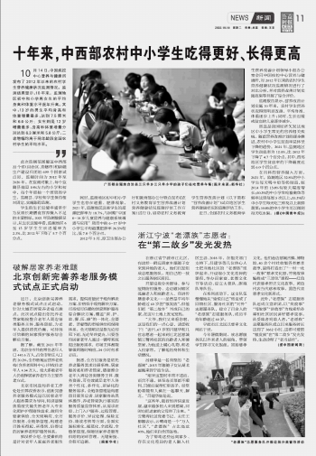 十年來(lái),中西部農(nóng)村中小學(xué)生吃得更好、長(zhǎng)得更高