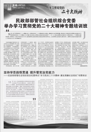 民政部部管社會組織綜合黨委舉辦學習貫徹黨的二十大精神專題培訓班