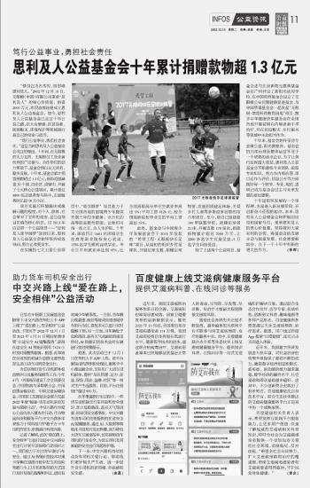 思利及人公益基金會(huì)十年累計(jì)捐贈(zèng)款物超1.3億元