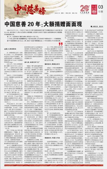 中國(guó)慈善20年:大額捐贈(zèng)面面觀